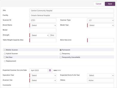 | Expected End of Life Year | The expected year when the scanner will be replaced or retired |