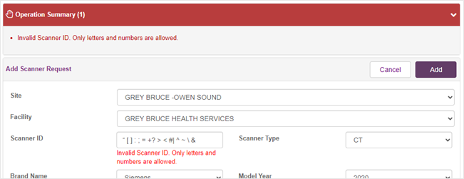 Support features (tooltips, indicators and warnings) are built into the Manage Scanners tool to ensure accurate and quality data is submitted when creating or updating scanner requests.